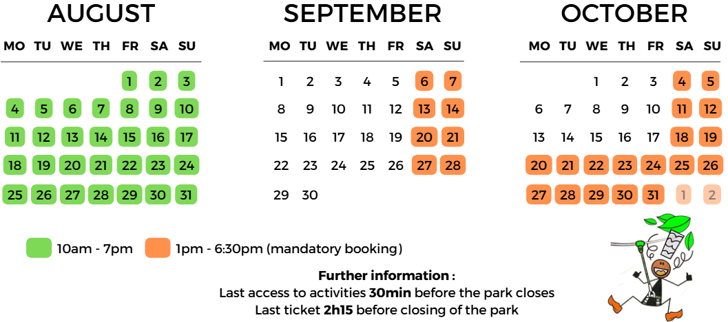 • Report to reception at the leisure park 30 min before departures for the adventure park